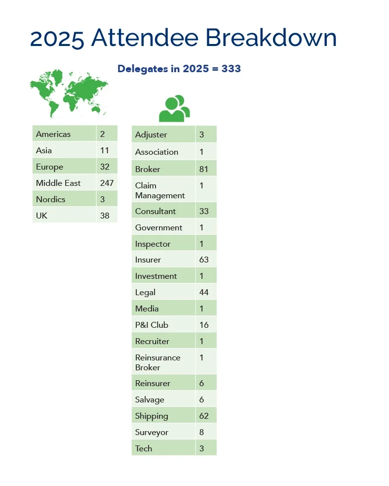 Marine Insurance Middle East will return to Dubai during October 2026 and again aims to highlight the benefits of doing business in the region and will bring together international and local organisations to discuss the exciting landscape. The 2025 event saw over 320 delegates attend and 2026 looks to be even bigger.